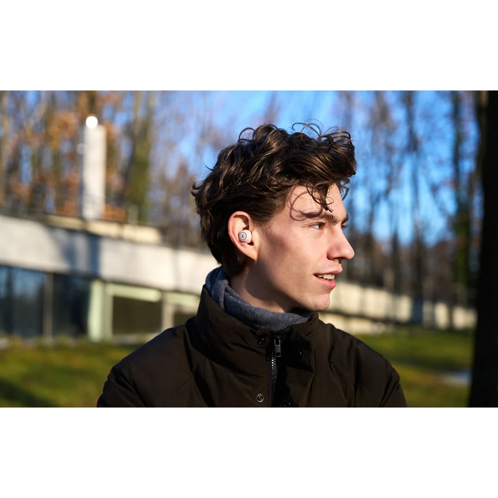 Az ergonomikus kialakítás a három méretben (S/M/L) kapható antimikrobiális fülpárnákkal kombinálva garantálja a tökéletes illeszkedést és az egész napos viselési kényelmet. Az IP54-es tanúsítás véd a nedvesség és a por ellen, így kiváló választás a kültéri tevékenységekhez.