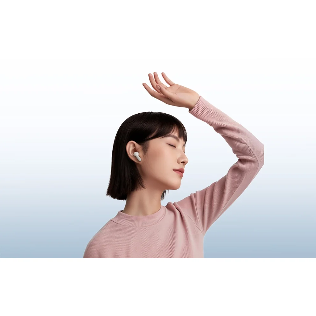 Elegáns kialakítás és viselési kényelem: A QCY Buds T43 egyedi dizájn jellemzi - a lágyan ívelt burkolat fényes élekkel és szövettextúrával elegáns, modernista jelleget kölcsönöz. A könnyű kialakítás és az ívelt S-íves szerkezet még intenzív mozgás közben is stabil és kényelmes viseletet biztosít. Ezek a fejhallgatók egész napos használatra készültek - alig fogja érezni őket, mégis tökéletesen a helyén maradnak a fülén.