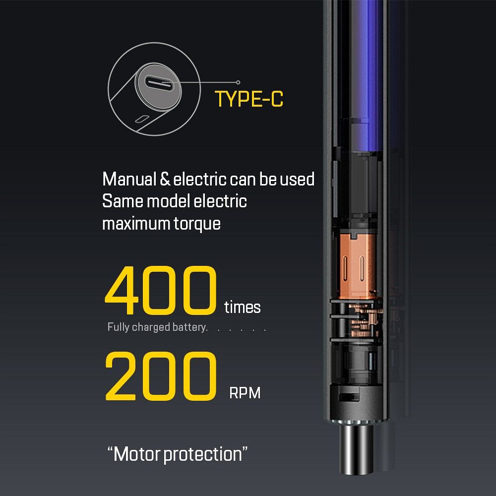 A csavarhúzó használható kézi és elektromos üzemmódban is, így sokoldalú eszköz különböző alkalmazásokhoz.