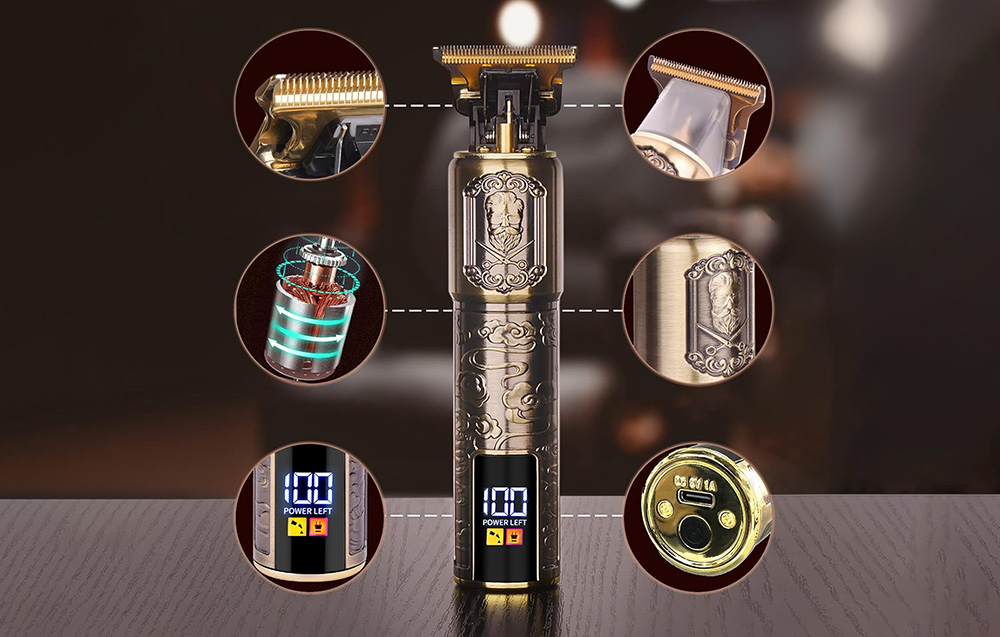 A 7500 RPM-es motorral felszerelt trimmer könnyedén bánik még a legsűrűbb hajjal is. A luxus fém ház növeli eleganciáját, és az LCD kijelző mutatja a töltöttségi szintet, hogy mindig tudd, mikor áll készen az eszköz a használatra.