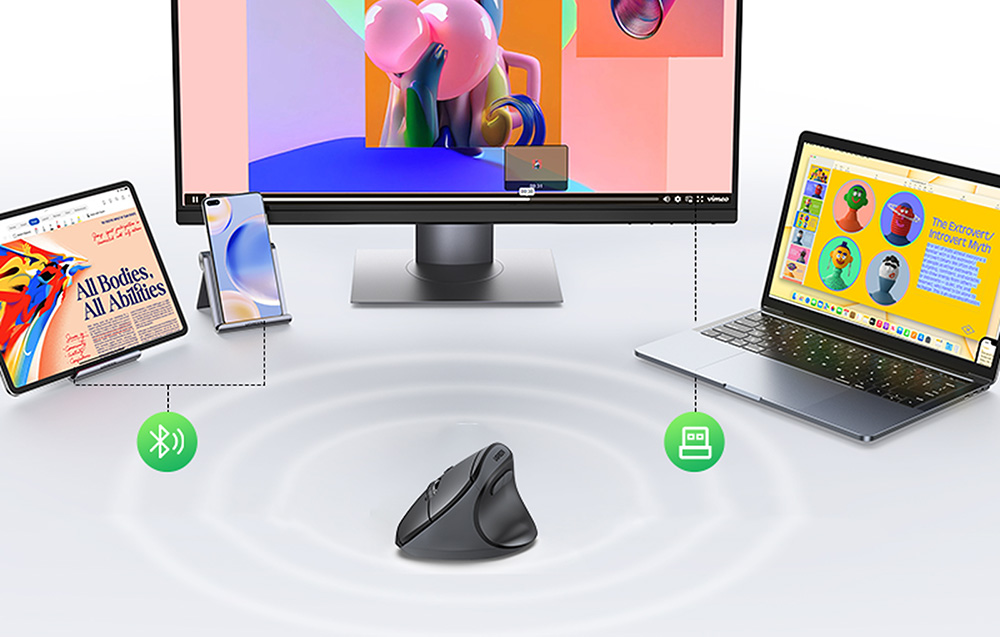Az UGREEN egeret az ergonómia szem előtt tartásával tervezték - függőleges, természetes kialakítása csökkenti a csukló és a kéz feszültségét, így hosszú ideig dolgozhat fáradtságérzet nélkül. A kontúros forma tökéletesen illeszkedik a közepes és nagyméretű (17-19 cm vagy annál nagyobb) kezekhez, stabil fogást és teljes mozgásvezérlést biztosít.