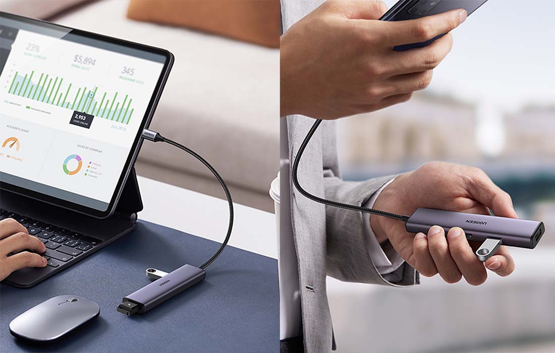 Ha a laptopnak nincs elég portja, a Ugreen hub biztosan jól jön. Az eszköz egy USB-C porttal és 4 USB 3.0 porttal rendelkezik. Kiváló minőségű alumíniumból készült, így garantált a tartósság és a viszonylag kis súly, a plug&play funkciónak köszönhetően pedig könnyedén csatlakoztathatja egy kompatibilis eszközhöz. Ezenkívül lehetővé teszi a fájlok 5 Gbps sebességű átvitelét.