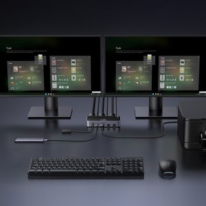 Az UGREEN AK700 egy KVM (Keyboard Video Mouse, a monitor, billentyűzet és egér számítógépek közötti megosztására szolgáló eszköz) kapcsoló, amelyet két számítógépen egyszerre dolgozó emberek számára terveztek. Lehetővé teszi a kényelmes váltást két eszköz között egyetlen monitor, billentyűzet és egér használatával. A nagy felbontás és a többféle megjelenítési mód támogatásának köszönhetően jól használható az irodában, valamint grafikus vagy multimédiás alkalmazásokkal való munka során.