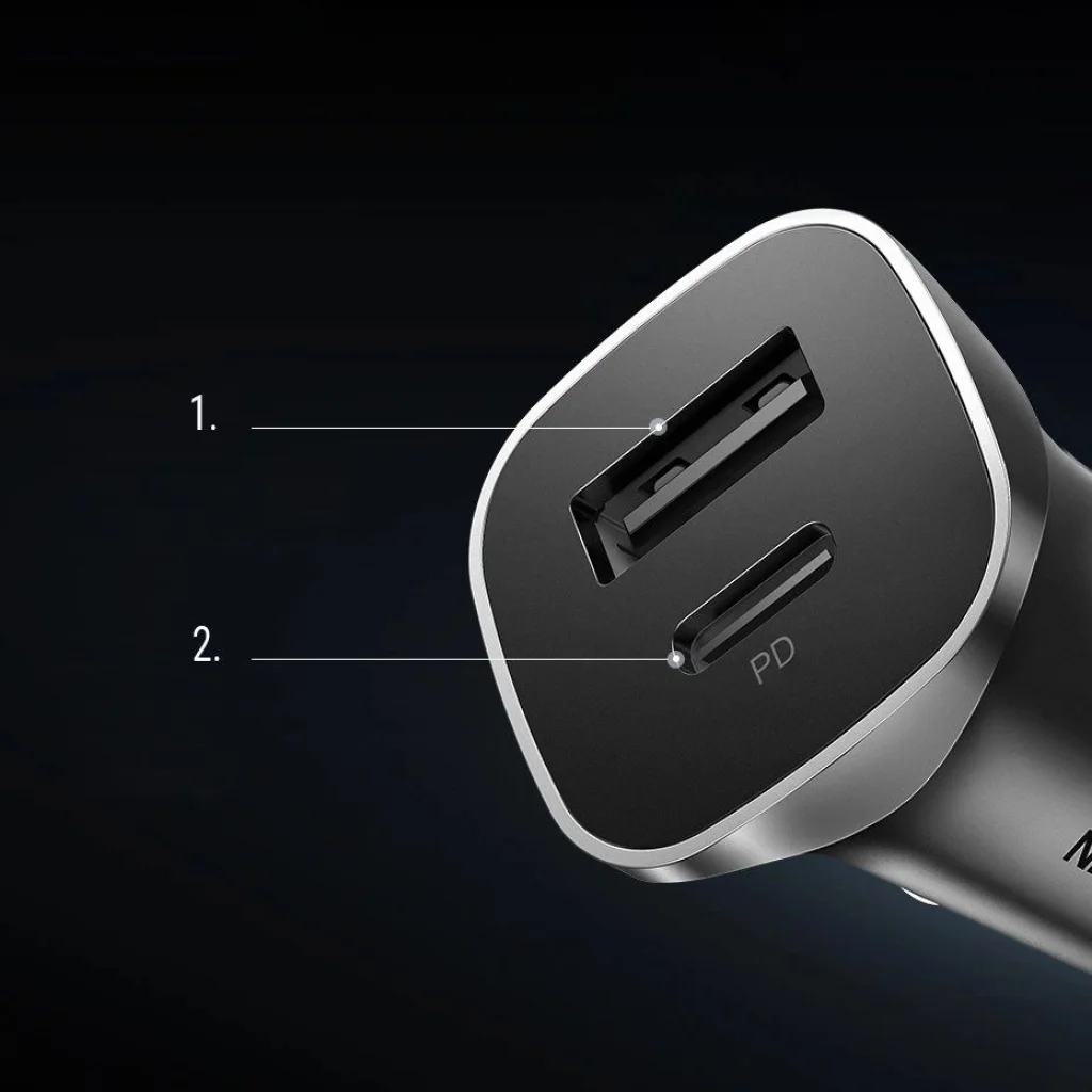 Ugreen CD130 kétportos autós töltő (USB type A + PD) Az útközbeni töltési forráshoz való hozzáférés fontos, függetlenül attól, milyen messzire utazik. A GPS navigáció, a telefon, a tablet vagy az autó kamera viszonylag gyakori csatlakozást igényel a töltőhöz, így érdemes elkerülni azt a helyzetet, mikor Ön vagy utasai nem férnek hozzá egy elektromos aljzathoz, és eszközeiket nem tudják bekapcsolni, például az útvonal ellenőrzéséhez. Kiváló megoldás a szivargyújtó töltő, amely támogatja a gyors töltési protokollokat, hatékony és nagy teljesítményű. Az Ugreen kétportos töltő választásával két töltési aljzathoz jut - USB type A és USB Type C. Ennek köszönhetően egyszerre két különböző eszközt is tölthet. Specifikáció: - Márka: Ugreen - Típus: Kétportos autós töltő - Töltési aljzatok száma: 2 - Töltési aljzatok típusa: USB type A, USB type C - Összes kimeneti áramerősség: 5V, 4.8A, 24W - Összes bemeneti áramerősség: 12-24V, 2.7A - USB type A aljzat teljesítménye: 18W - USB Type-C aljzat teljesítménye: 20W - Tápegység: Szivargyújtó aljzat - Ház anyaga: Alumínium - Súly: 20.4g A készlet tartalma: - 1 x autós töltő A legfontosabb jellemzők: - Gyors töltés - Nagy teljesítmény - Két eszköz egyidejű csatlakoztatásának lehetősége - Túlmelegedés elleni védelem - Könnyen telepíthető - Esztétikus megjelenés - Masszív alumíniumház Kényelem minden utazás során Az autós töltési hozzáférés fontos, függetlenül a megtett távolságtól. Ezzel a kétportos eszközzel kényelmesen tölthet két eszközt egyszerre. Használata nagyon egyszerű - csak csatlakoztassa a szivargyújtó aljzatába. Ezt akár egy kézzel is megteheti, vezetés közben is. Két eszköz egyidejű töltése Két aljzat, amelyhez csatlakoztathatja eszközeit, nagy kényelmet biztosít, különösen, ha nem egyedül utazik. Jelenleg szinte mindenkinek több elektronikus eszköze van, amelyek időről időre töltést igényelnek, így egy aljzat nem biztos, hogy elegendő. Ebben a töltőben két aljzat áll rendelkezésére - USB type A és USB Type C, így szinte bármely jelenleg forgalmazott eszközt csatlakoztathat hozzájuk. Esztétikus megjelenés Nem kell aggódnia, hogy járműve belső tere nem lesz esztétikus a töltő felszerelése után. A kiegészítő kicsi és feltűnésmentes. A szivargyújtóba csatlakoztatva a jármű gyári elemének hatását kelti.