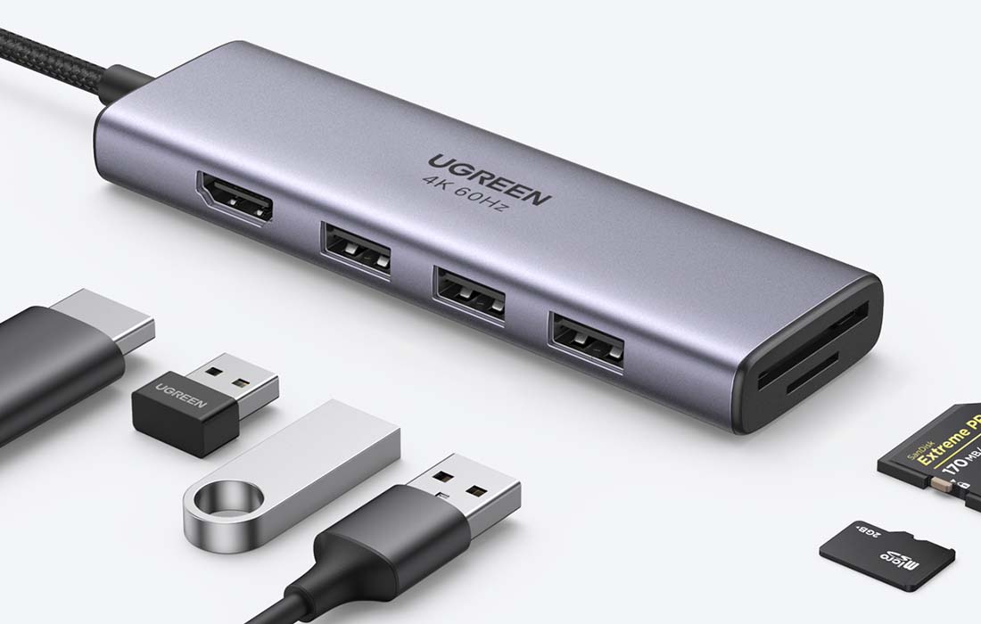 Növelje számítógépe vagy laptopja képességeit. A többfunkciós UGREEN CM511 adapter akár 6 hasznos portot kínál - 3 USB3.0 portot, egy HDMI portot és SD és micro SD kártyák számára kialakított foglalatokat. Az eszköz lehetővé teszi a kiváló minőségű 4K videók megjelenítését, és akár 5 Gbps sebességű fájlátvitelt is lehetővé tesz. Emellett univerzális kompatibilitása, kompakt mérete és robusztus kialakítása is megkülönbözteti.
