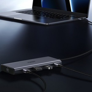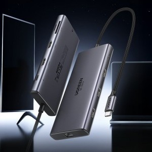 Az Ugreen CM639 egy 10 az 1-ben USB-C hub, amelyet a laptop egyetlen USB-C portjához csatlakoztatva tíz további portot nyerhetsz az adatok, a videó és a tápellátás számára. Két, akár 8K felbontást támogató HDMI-kimenettel, három USB-A porttal, egy USB-C porttal adatátvitellel, SD- és TF-kártyaolvasóval, 1 Gbps-os Ethernet-porttal és 100 W-os PD-vel rendelkezik. A készülék támogatja az egyidejű töltést, adatátvitelt és a két képernyős működést 4K vagy 8K minőségben, így sokoldalú eszköz az irodai és a távoli munkavégzéshez egyaránt.