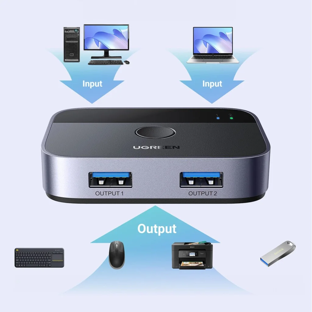 - Növeli a munkahatékonyságot azzal, hogy lehetővé teszi USB eszközök megosztását két számítógép között. Az Ugreen CM757 adapter lehetővé teszi, hogy billentyűzetet, egeret, nyomtatót vagy pendrive-ot csatlakoztasson két számítógéphez egyidejűleg.