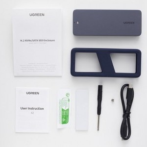Az UGREEN CM777 tervezésekor a kényelem volt a középpontban. A meghajtóház szerszámmentes nyitás/zárást tesz lehetővé, az SSD rögzítéséhez pedig a mellékelt csavarhúzó és csavar áll rendelkezésre, percek alatt üzembe helyezhető. Az USB-C csatlakozó gyors és stabil kapcsolatot biztosít laptophoz, asztali géphez vagy akár konzolhoz. Az 5V/3A tápellátás gondoskodik a stabil működésről, külső adapter nélkül. A mellékelt strapabíró szilikon védőtok extra védelmet nyújt a mindennapi használat során.