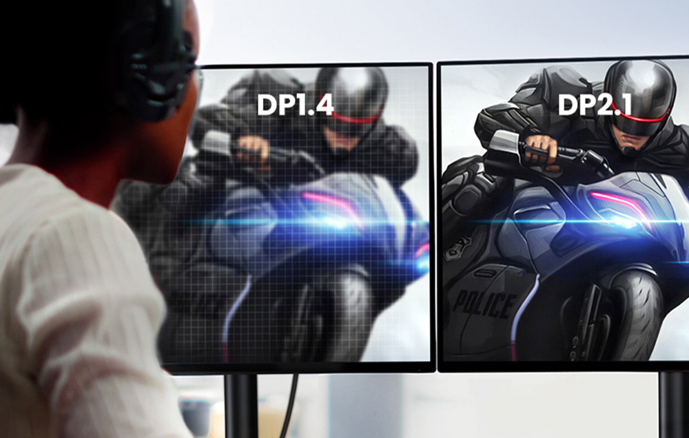 A 80 Gbps sávszélességgel a UGREEN kábel gyorsabb adatátvitelt biztosít a korábbi verziókhoz, például a DP1.4-eshez képest. Páratlanul egyenletes képet garantál, és kiküszöböl minden késleltetést, így teljes mértékben élvezheti a tökéletes vizuális élményt. Támogatja a nagy felbontású videoátvitelt is, mint például a 16K@30Hz.