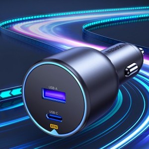 Ugreen EC701 autós töltő, USB + USB-C, 63W (fekete)