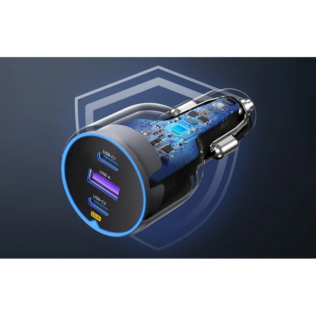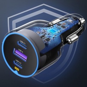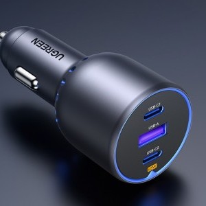 Az Ugreen EC703 egy többportos autós töltő, amely páratlan töltési teljesítményt biztosít útközben. A három töltőporttal - két USB-C és egy USB-A porttal - akár három eszközt is tölthetsz egyszerre, maximális 75W teljesítménnyel. A masszív kialakítás stabilan tartja a töltőt a szivargyújtó aljzatban, függetlenül az úton lévő körülményektől.