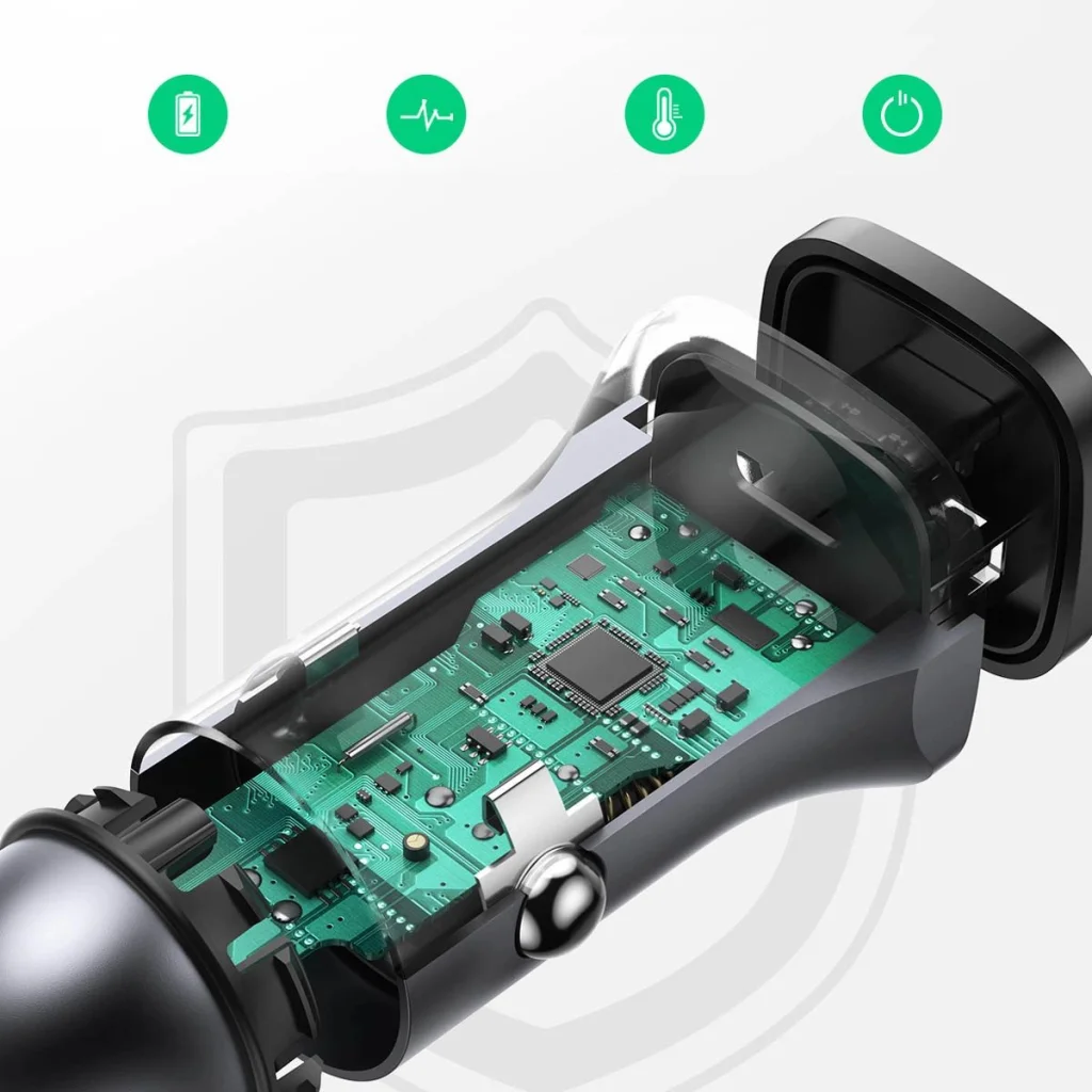 Két eszköz egyidejű töltése Két aljzat, amelyhez csatlakoztathatod az eszközeidet, nagy kényelmet jelent, különösen, ha nem egyedül utazol. Jelenleg szinte mindenkinek van több elektronikus eszköze, amit időnként tölteni kell, ezért egy aljzat nem biztos, hogy elegendő. Ebben a töltőben két aljzat áll rendelkezésedre - USB-A és USB-C, így szinte bármilyen jelenleg a piacon lévő eszközt csatlakoztathatsz hozzájuk. Esztétikus megjelenés Nem kell aggódnod amiatt, hogy járműved belső tere csúnyán fog kinézni, miután beszerelted a töltőt. A kiegészítő kicsi és diszkrét. A szivargyújtó aljzatba dugva olyan hatást kelt, mintha a jármű gyári eleme lenne.