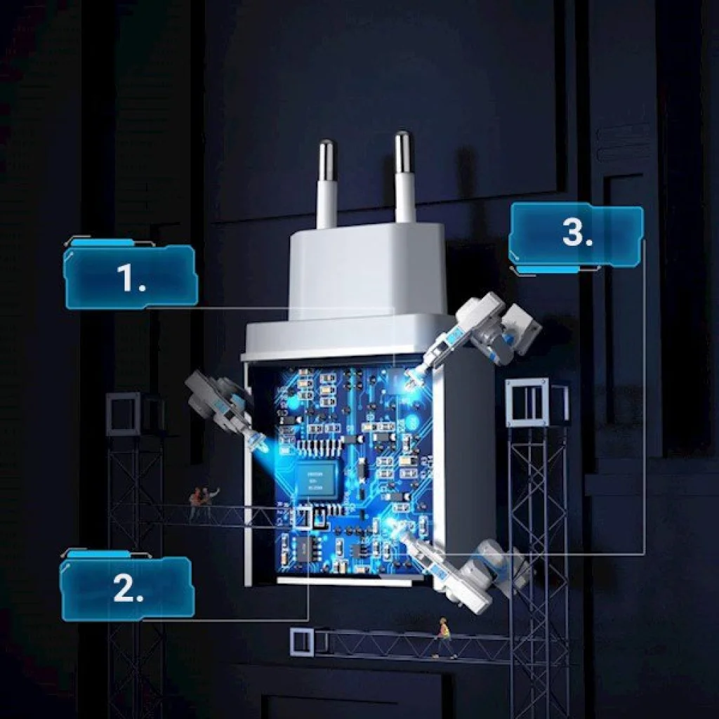 Hálózati töltő PowerXQuad (CH4) - 2X PD20W Type-C, 2X USB 3.1A, Szupergyors Töltő Utazó Adapter 40W - Fehér 6 000 Ft Termék adatlap