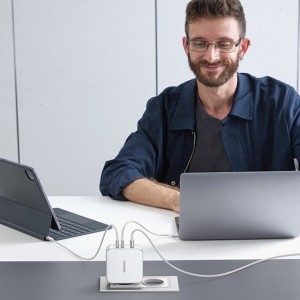 - 3 az 1-ben univerzális töltés: Egyidejűleg tölthet két USB-C és egy USB-A porton keresztül, optimális energiaelosztással, így az összes fontos eszközét egy helyen tarthatja feltöltve.