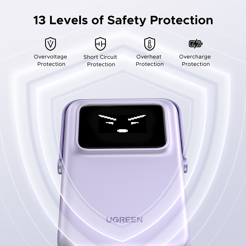 Termék leírás Ugreen - PB571 (35606) Power Bank - digitális kijelzővel, gyors töltés, mágneses, vezeték nélküli, 5000mAh, USB-C, 18W, 3A - Lila