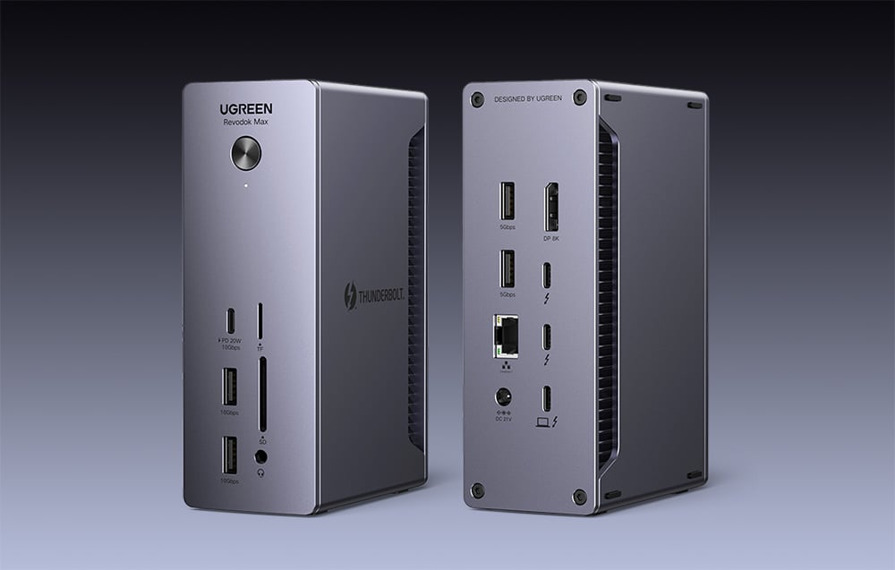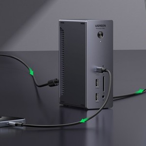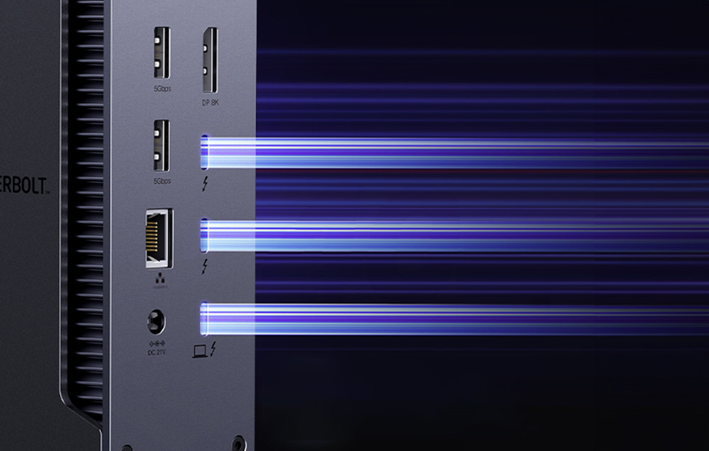 Két Thunderbolt 4 porttal az Ugreen U710 nemcsak akár 40Gbps adatátvitelt biztosít, hanem 8K@30Hz felbontás támogatását is. Ez azt jelenti, hogy zökkenőmentesen csatlakoztathatja legújabb eszközeit és élvezheti a kivételes teljesítményt és munkaflexibilitást.