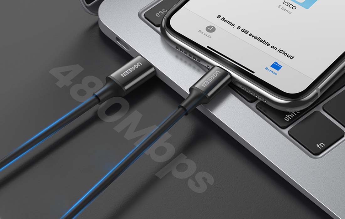 Gyors adatátvitel és készüléktöltés egyben. Lehetővé teszi a fájlok, azaz fényképek, videók és dokumentumok 480 Mbps sebességgel történő átvitelét a töltési minőség elvesztése nélkül.