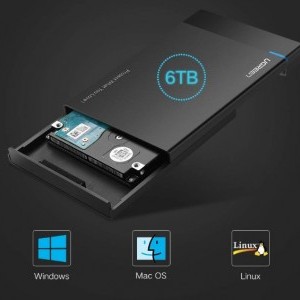 A UGREEN 2,5" SATA 2,5" külső meghajtóház a meghajtó védelmének és az adatátviteli sebességnek a figyelembevételével lett kialakítva. Kompatibilis a Windows, Mac OS és Linux operációs rendszerekkel. További előnye, hogy a meghajtót közvetlenül a TV-hez csatlakoztathatja (ha az támogatja a külső memóriát), vagy a PS4 vagy Xbox (360/One) konzol külső meghajtójaként használhatja.