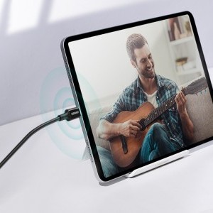 A belső szerkezet horganyzott rézből készült, míg az egészet tartós és rugalmas TPE anyag borítja. Ez teszi a kábelt ellenállóvá a hajlítással, töréssel vagy szakadással szemben. Ezenkívül a kábel csatlakozója, amely a legérzékenyebb a sérülésekre, további védelmet kapott. Ez nemcsak hosszabb élettartamot eredményez, hanem növeli a biztonságot is a használat során.