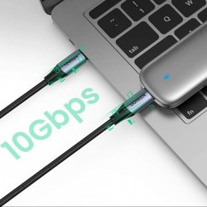 Az UGREEN USB-C kábel kiváló minőségű, tartós és esztétikus. A kábel kiváló minőségű anyagokból készült, kopás- és sérülésálló, az alumínium bevonat kiváló védelmet nyújt a túlmelegedés ellen.