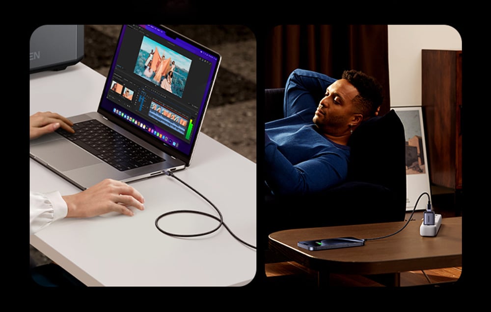 A Power Delivery 3.1 technológia támogatása akár 240 W-os töltést is lehetővé tesz, így nem kell túl sokat várnia arra, hogy eszköze teljesen feltöltődjön. MacBook Air M3 készülékét mindössze 35 perc alatt 88%-ra, iPhone 15 készülékét pedig 30 perc alatt 60%-ra feltöltheti. A kábel kompatibilis a különböző töltési protokollokkal, például a PD3.1, PD3.0, QC4.0, QC3.0, QC2.0, PPS és FCP protokollokkal, így számos készülékhez jól használható.