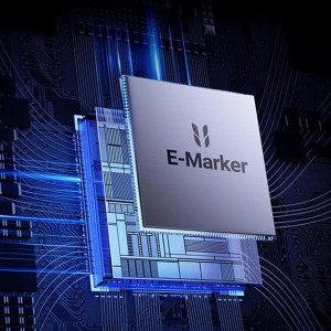 A kábel intelligens E-Marker chippel rendelkezik, amely automatikusan a csatlakoztatott eszközhöz igazítja a töltési teljesítményt, így biztosítva az optimális és biztonságos töltést. A chip fejlett védelmet nyújt a túlfeszültség, a túlmelegedés, a túlterhelés és a rövidzárlat ellen, így mind a kábel, mind a töltendő eszköz biztonságát garantálja.