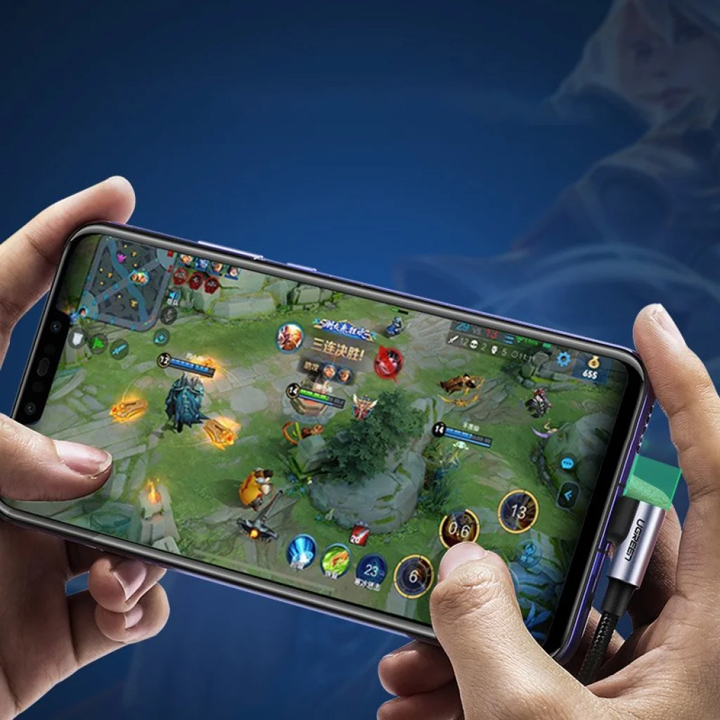 3A áramerősségű, gyorstöltésre alkalmas, 90 fokban döntött Type-C fejjel a töltés közbeni kényelmes használatért. Optimális, 0.5 m hosszúsággal. Nylon harisnyázott és réz vezetékelésű, cink ötvözet bevonattal. Ellenáll a kábelcsomók kialakulásának és kellően flexibilis.