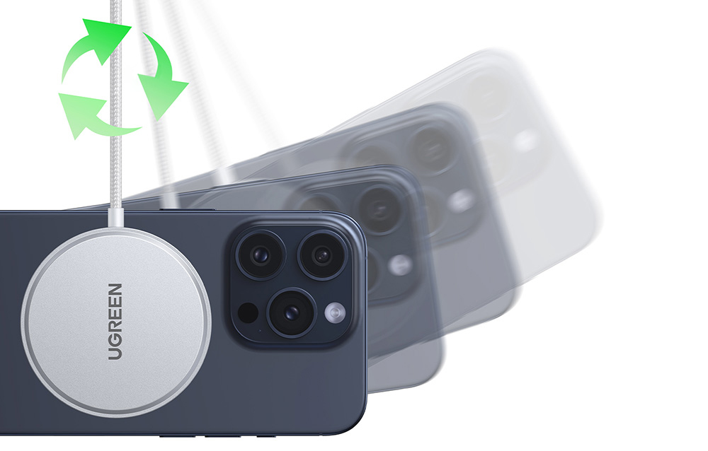 A Ugreen W703 készülékkel nem kell aggódnia a töltés minősége miatt. Az eredeti töltőmodulnak és a Qi2 tanúsításnak köszönhetően ez a töltő gyors és stabil töltést biztosít akár 15W-os teljesítménnyel, és mindössze 2 óra alatt teljesen feltölti iPhone 15 készülékét. Ha ezt a töltőt választja, biztos lehet benne, hogy készüléke biztonságos és optimális módon töltődik. A legjobb eredmény érdekében mindenképpen használjon 20 W-os vagy annál nagyobb teljesítményű fali töltőt (külön megvásárolható).