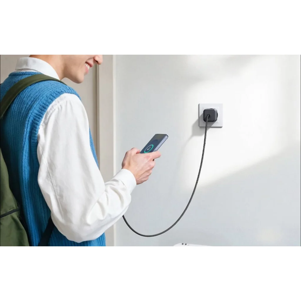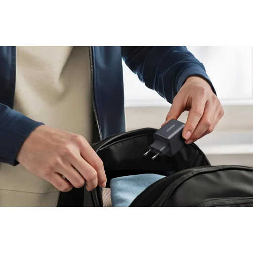 GaN technológia – nagyobb hatékonyság kisebb házban. A GaN technológia alkalmazása lehetővé tette egy olyan töltő létrehozását, amely kisebb és energiahatékonyabb, mint a hasonló teljesítményű hagyományos modellek. A kompakt kialakítás megkönnyíti a hordozást, és azt jelenti, hogy a töltő nem foglal sok helyet a táskában vagy a hátizsákban. Kis mérete ellenére stabil és hatékony töltést biztosít.