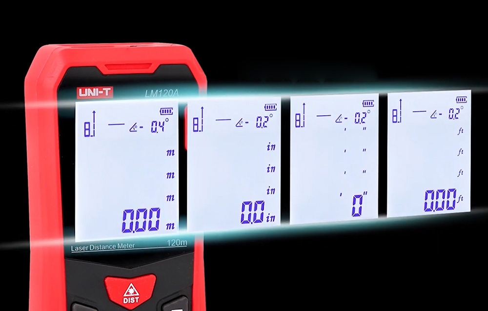 A nagyméretű, 2 hüvelykes, háttérvilágítással ellátott LCD-kijelző kiválóan leolvasható eredményeket biztosít, a beépített vízmértékek (vízszintes és függőleges) pedig segítik a készülék igazítását és növelik a mérési pontosságot. A 99 mérési eredményt tároló funkció lehetővé teszi a gyors hozzáférést a mérési előzményekhez, jegyzetelés nélkül. A lézer és a műszer automatikus kikapcsolása energiát takarít meg.