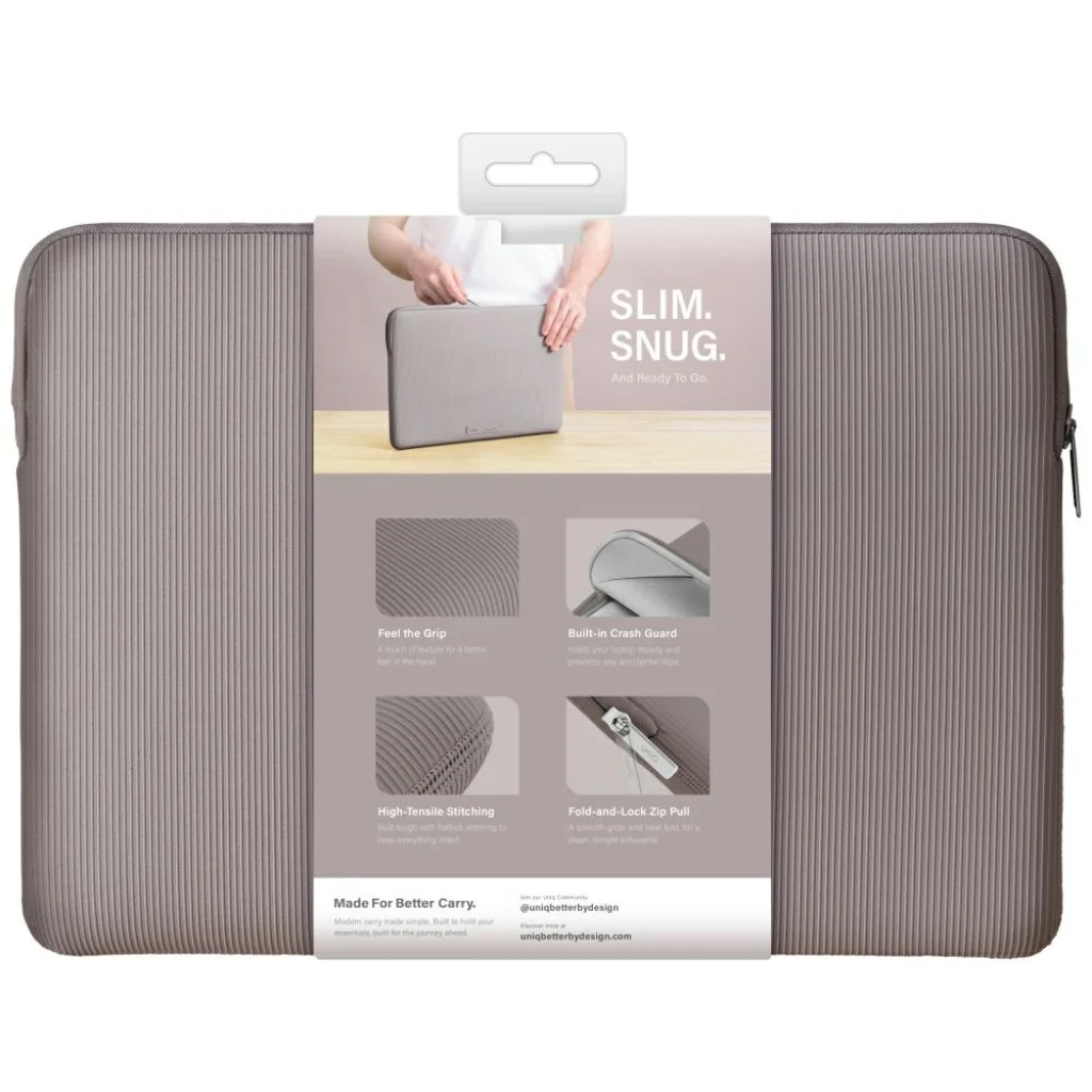 A Uniq Cyprus Ridge Edition Laptop Sleeve 16" laptop táska vízálló neoprénből készült. A Uniq egy olyan márka, amely ötvözi az eleganciát, a funkcionalitást és a modern technológiákat a mobil eszközökhöz készült védő kiegészítők létrehozásában. A Uniq termékek jellemzői a precíz kivitelezés, a kiváló minőségű anyagok és a részletekre való odafigyelés. Kivételes védelmet és egy designos megjelenést kínálnak, amely kiegészíti a modern eszközök esztétikáját. Tokjaik és kiegészítőik a stílus és a megbízhatóság tökéletes kombinációját jelentik, biztosítva a legmagasabb szintű biztonságot. Egyedi design és védelem A Cyprus Ridge Edition egy stílusos és tartós tok, amely vízálló neoprénből készült, elegáns textúrával. Megvédi laptopját a fröccsenésektől, az ütődésektől és a váratlan időjárási körülményektől. A háromrétegű védelem és a puha, plüss belső párnázás megóvja eszközét, míg a belső ütéselnyelő védelem és a masszív flatlock varrások növelik a biztonságot. Ezen kívül a cinkötvözet cipzár modern, minimalistás érintést ad a tokhoz, biztosítva a biztonságos záródást. Karcsú forma, teljes kényelem Karcsú, testhezálló kialakításának köszönhetően a Cyprus Ridge kényelmesen illeszkedik a legfeljebb 16 hüvelykes laptopokhoz anélkül, hogy felesleges tömeget adna hozzá. Ez a tökéletes megoldás azok számára, akik ötvözni szeretnék az elegáns design-t a gyakorlati védelemmel utazáshoz, munkához vagy iskolához. Minden részletet gondosan átgondoltunk a kényelem és az eszköz védelmének biztosítása érdekében. Műszaki adatok Márka Uniq Típus Cyprus Ridge Edition Laptop Sleeve 16" vízálló neoprén Maximális laptop méretek 36,3 cm x 25,6 cm x 1,9 cm Szín Szürke Anyag Neoprén