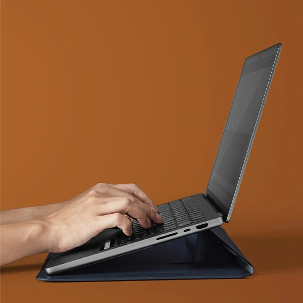 Védd meg laptopod miközben javítod a munkaterületed bárhol is szükséged van rá. A tok fröccsenésálló vegán bőrből készült, belseje pedig puha mikroszálas béléssel van ellátva. A vegán bőr megjelenése és tulajdonságai nagyon hasonlók a természetes bőrhöz, de gyártása során egyetlen állat sem sérült meg. Ez a kiegészítő kompakt profilú és nagyon keskeny, mágneses zárral záródik. Úgy tervezték, hogy a számítógéppel való munkát a lehető legegyszerűbbé tegye a felhasználó számára - az intelligens borító néhány másodperc alatt összehajtható és mágnesesen rögzíthető, így előkelő állványként szolgál 25 fokos szögben, ami hosszú órákig kényelmes munkát biztosít az íróasztalnál vagy egy kávézóban. A produkció során modern design-t alkalmaztak, ami magas minőségű, különleges és sokoldalú felhasználású terméket eredményezett.