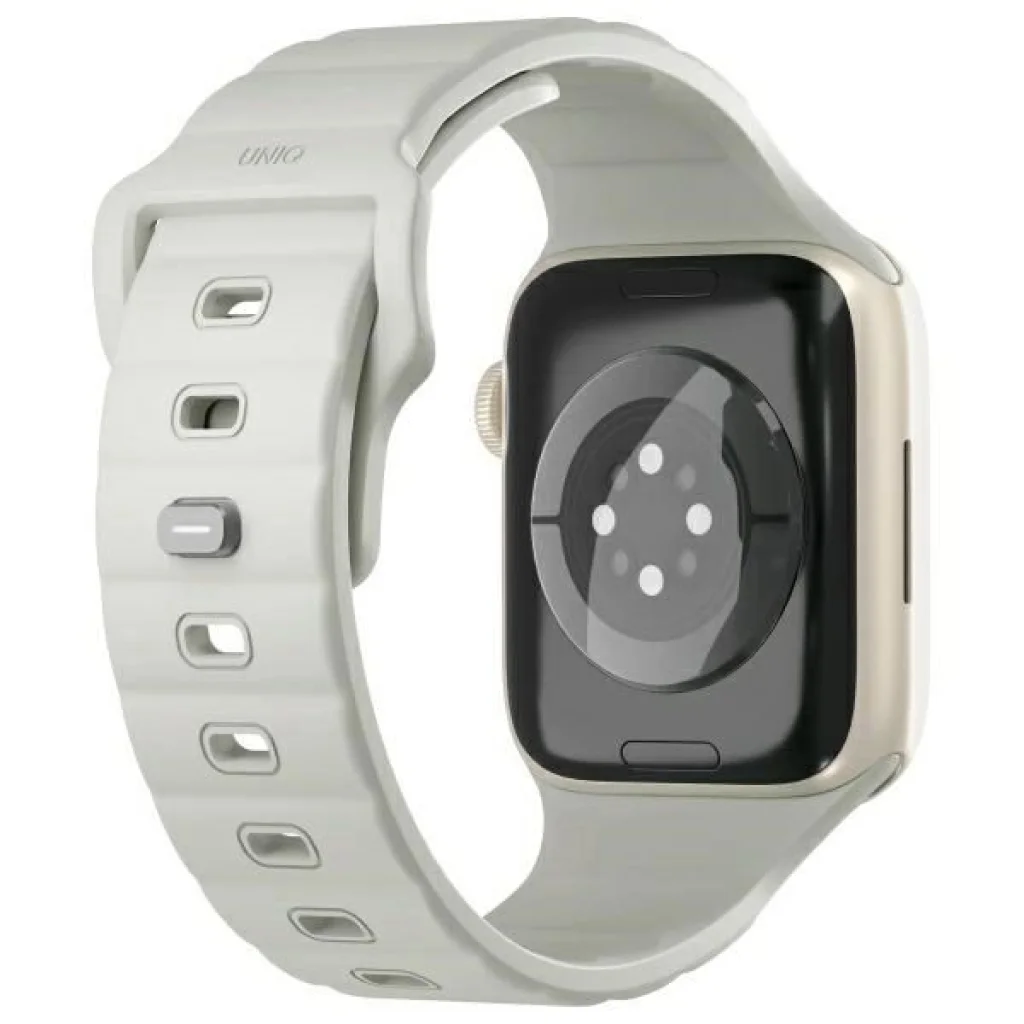 Készen áll minden kalandra – hajnalban és alkonyatkor egyaránt! Ez a sportos óraszíj tartós FKM gumiból készült, és nagyszerű választás aktív emberek számára, akik értékelik a kényelmet és a funkcionalitást. Csatos és állítható kialakításának köszönhetően tökéletesen illeszkedik a csuklóra, stabilitást és kényelmet biztosítva. További szellőző hornyok gondoskodnak a légáteresztésről, a sima, rugalmas felület pedig kellemes viseletet nyújt még intenzív tevékenységek során is. A szíj ezen egyedi kiadása sötétben világít, amely különleges jelleget kölcsönöz neki, és bármikor vonzza a tekinteteket – nappal és éjszaka egyaránt. Mindennapi védelemre és funkcionalitásra tervezve, ez a modell sportos stílust ötvöz megbízhatósággal. Készen áll, hogy kísérje Önt bármilyen tevékenység során, bármilyenek is legyenek a körülmények! Műszaki adatok: Márka: Uniq Modell: Stride SE Típus: Apple Watch Szíj Anyag: FKM Gumi / Alumínium Kompatibilitás: Apple Watch 42/41/40mm