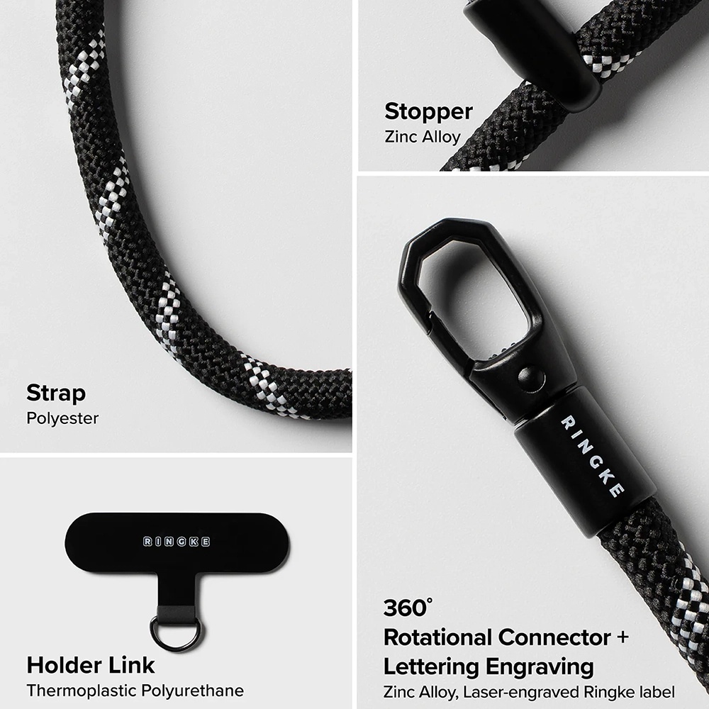 • 360°-ban forgatható csatlakozó: Megakadályozza a pánt elcsavarodását, így mindig kényelmesen használható, és lehetővé teszi további kiegészítők rögzítését is. Prémium cinkötvözetből, lézergravírozott Ringke felirattal.