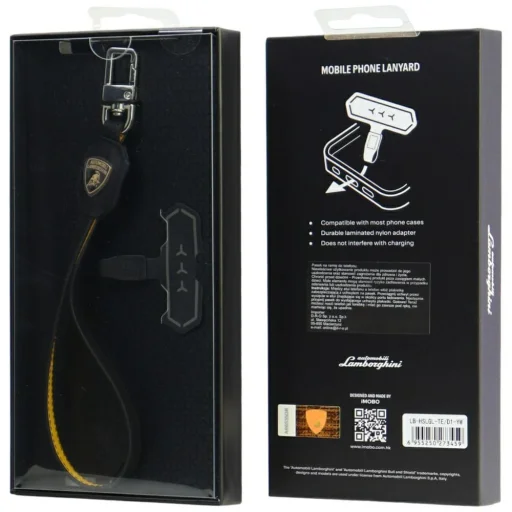 Funkcionalitás és sokoldalúság. A csuklópánt tartalmaz egy tartós adaptert laminált nylonból, amely lehetővé teszi a gyors telepítést a tok eltávolítása nélkül. Kompatibilis a piacon kapható legtöbb okostelefon tokkal, és nem zavarja a töltési folyamatot. A finom Lamborghini logó hangsúlyozza a termék exkluzív jellegét, ideális kombinációja a praktikus megoldásnak és a rangos stílusnak.