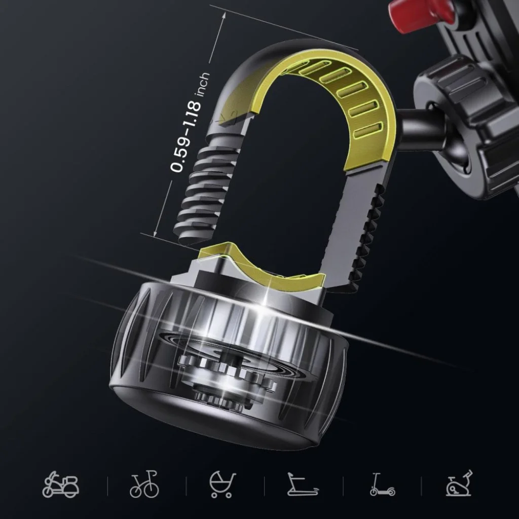 A rugós karok szorosan fogják a telefont, és stabilan a helyén tartják még egyenetlen utakon, erdei ösvényeken vagy macskaköves felületen is. Gyors biztonsági zárral van felszerelve – bekapcsolt állapotban nincs lehetőség a tartó véletlen kinyílására, illetve a telefon kiesésére. 5,7–6,8 colos kijelzőméretű okostelefonokhoz használható. Az egész szerkezet tartós, rezgés- és időjárásálló ABS anyagból készült.