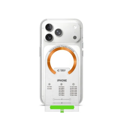 A Tech-Protect MMP-210 egy univerzális megoldás, amely MagSafe funkcionalitást ad bármely okostelefonnak. Az ultra vékony mágneses gyűrű a telefon vagy tok hátoldalára rögzíthető, lehetővé téve a kapcsolatot a mágneses kiegészítők teljes ökoszisztémájával – a vezeték nélküli töltőktől kezdve az autós tartókon át egészen a powerbankokig és pénztárcákig. Erős mágnesek biztosítják a stabil kapcsolatot a MagSafe kiegészítőkkel, garantálva a stabilitást töltés és mindennapi használat során. A precíz elhelyezés tökéletes tapadófelületet hoz létre, minimalizálva annak kockázatát, hogy az eszköz véletlenül lecsússzon. A kompakt kialakítás nem növeli jelentősen a telefon vastagságát, megőrizve annak karcsú sziluettjét, míg az univerzális kompatibilitás lehetővé teszi, hogy a gyűrű a piacon lévő legtöbb okostelefon modellel együttműködjön. A csomagban található egy speciális szerelőburkolat, amely jelentősen megkönnyíti a gyűrű pontos elhelyezését a telefon tokján. Ennek köszönhetően elérhetjük az ideális középre állítást és a mágnesek pontos pozicionálását az eszköz középpontjával szemben, ami kulcsfontosságú a MagSafe kiegészítőkkel való helyes működéshez.