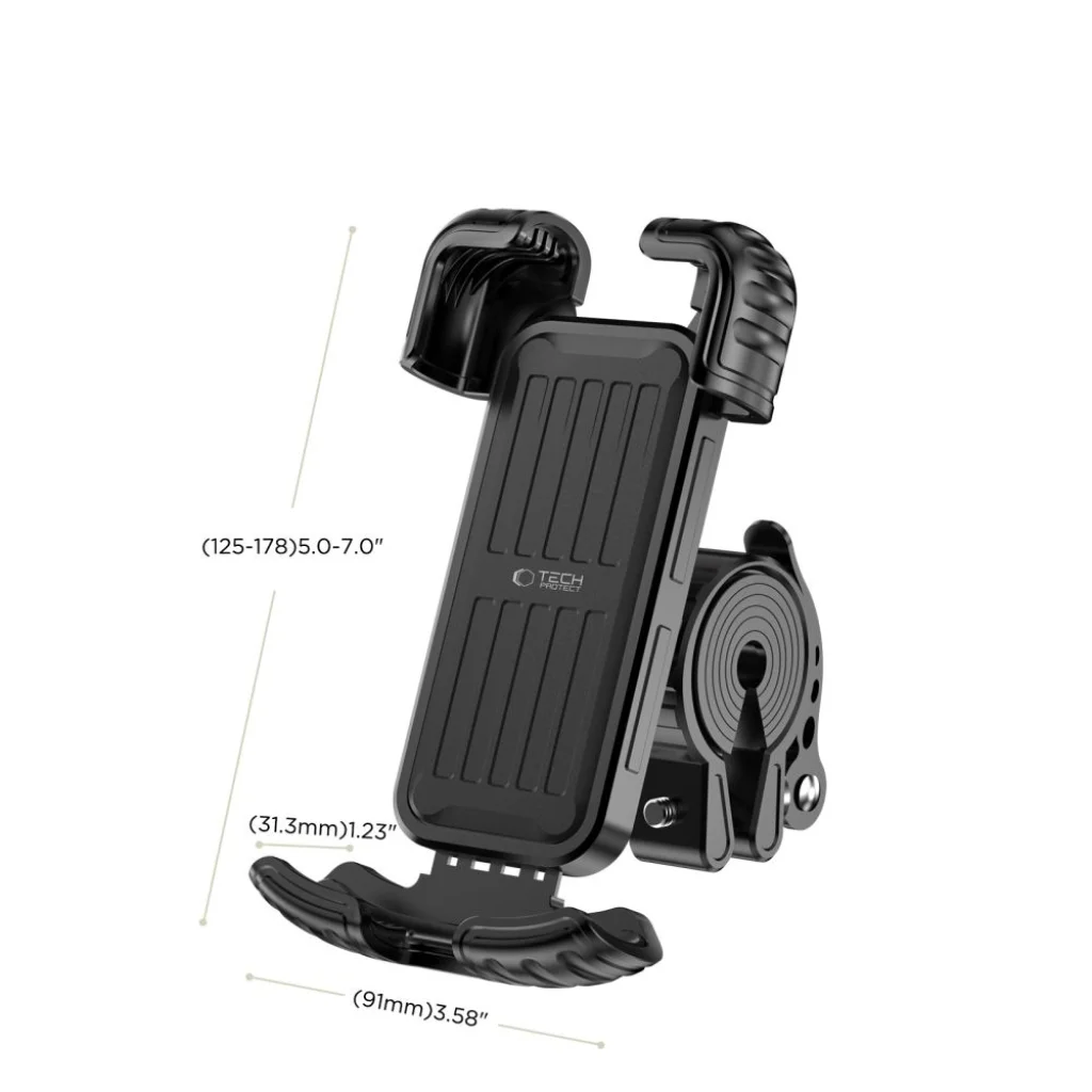 A Tech-Protect V7 egy kormányra rögzíthető tartó kerékpárhoz, elektromos kerékpárhoz vagy motorkerékpárhoz, teljesen körülölelő kialakítással, amely négy oldalról fogja közre a telefont. Ennek köszönhetően az okostelefon biztonságosan a helyén marad, és nincs kiesésveszély még egyenetlen utakon vagy dinamikus haladás közben sem.
