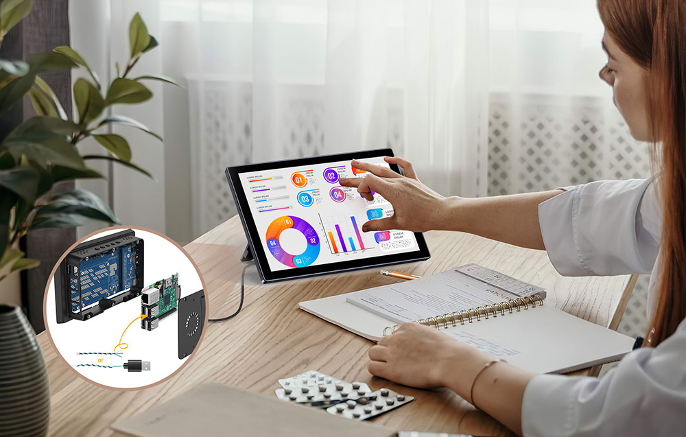Az Uperfect UPi B7 kifejezetten a Raspberry Pi 4, 4B és 5-re lett tervezve. 1920x1200 felbontást és 10 pontos érintőérzékenységet kínál a kivételes képminőség és a precíz működés érdekében. Kettős hangszóróval is rendelkezik, amely tiszta hangzást garantál. Ezen felül sokoldalúságával tűnik ki, állítható állvánnyal a kényelem és termelékenység érdekében. A monitor széles körű eszközökkel kompatibilis, ideálissá téve kreatív projektekhez, napi használatra és szórakozáshoz.