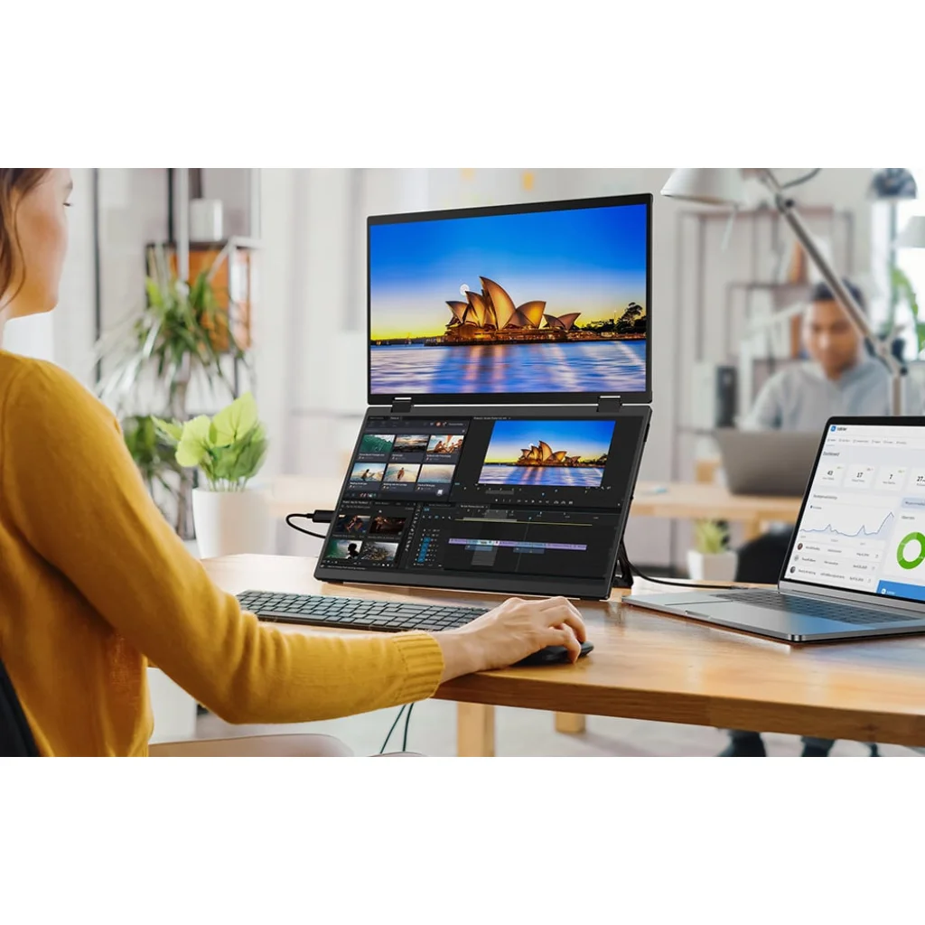 Az Uperfect UStation Delta 15,6" 1920x1080 60Hz hordozható monitor a maximális funkcionalitás és kényelem jegyében készült. 15,6" átlóval és Full HD (1920 x 1080) felbontással minden képernyő éles és részletes képet nyújt. Lehetővé teszi több feladat egyidejű hatékony kezelését, növelve a termelékenységet és a kényelmet. A Delta többképernyős képességével kibővítheti munkahelyét vagy összecsukhatja a képernyőket, hogy kényelmesen oszthassa meg a tartalmat a kollégáival.