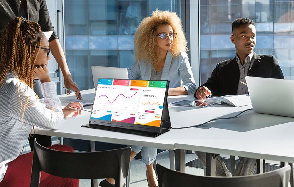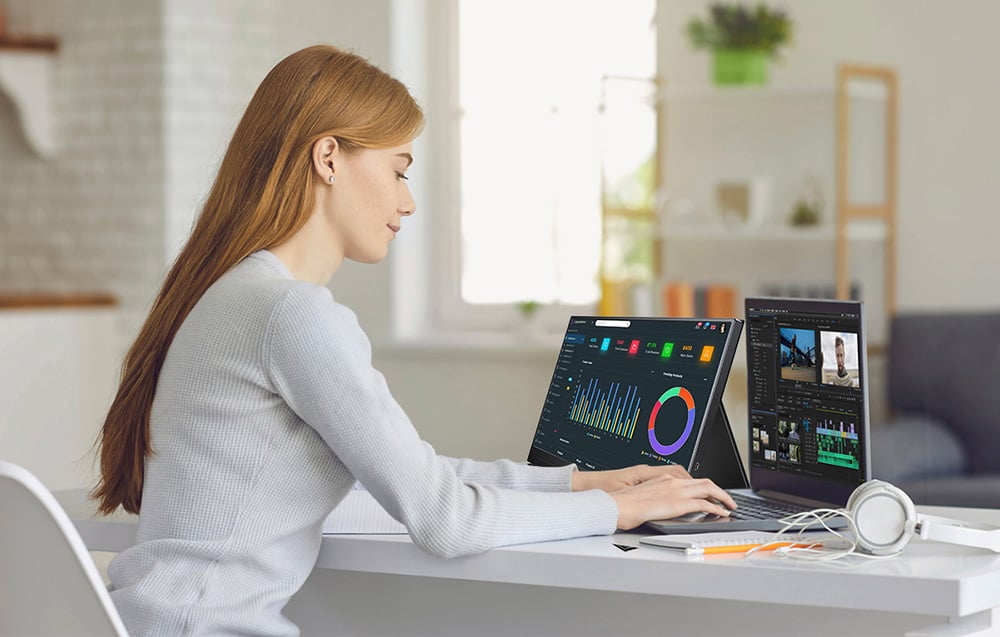 A monitor kompatibilis a USB-C eszközökkel, így lehetővé teszi, hogy kiterjeszd telefonod képernyőjét munkához vagy játékhoz. A monitor olyan játékkonzolokkal is működik, mint a PS4, Xbox One és Switch, így tökéletes útitárs. Az B5 képernyőmegosztási funkciójának köszönhetően kényelmesen bemutathatod a tartalmakat értekezletek során. Az OTG (micro USB) port pedig lehetővé teszi az egér vagy billentyűzet csatlakoztatását.