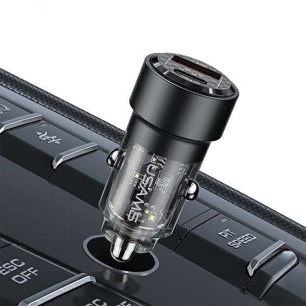 A USAMS C39 töltő a funkcionalitáson túl eleganciájával is kitűnik. A minimalista, áttetsző dizájn, amely megmutatja a belső áramköri lapot és a fejlett technológiát, nemcsak egy diszkrét kiegészítő az autó belsejében, hanem egy stílusos elem is, amely kiemeli a modernséget. A kompakt méretnek és az alumínium ötvözetből és PC-ből készült, tartós háznak köszönhetően tökéletesen illeszkedik az autó szivargyújtó aljzatába anélkül, hogy zavarná a belső tér esztétikáját. A lila szín pedig különleges, egyedi megjelenést kölcsönöz neki.