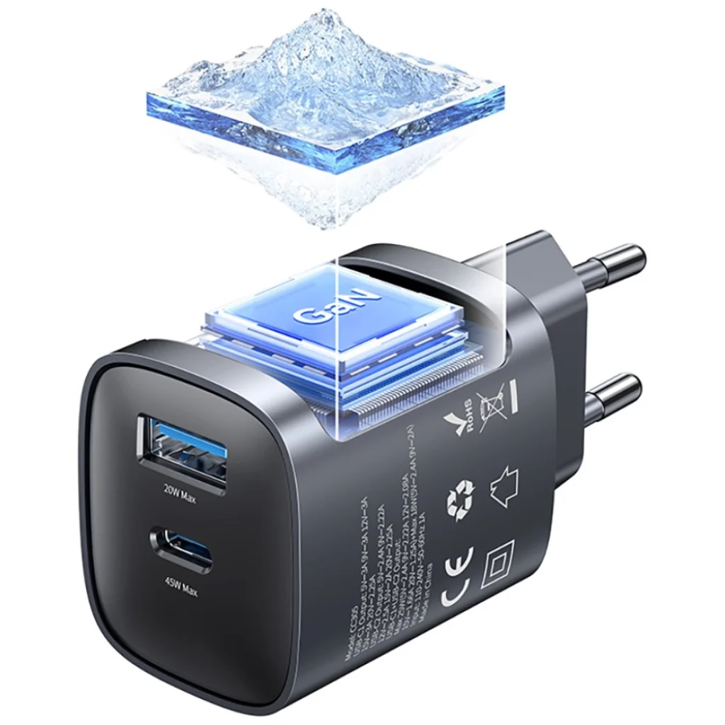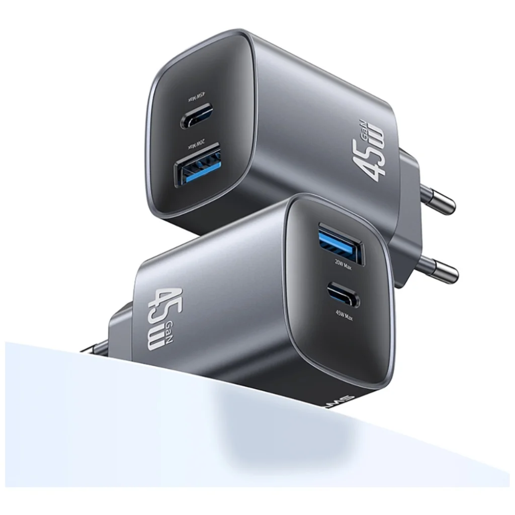 Az USAMS CC290 T66 egy kompakt, GaN technológiát alkalmazó fali töltő, amely összesen 45 W teljesítményt biztosít, és két univerzális kimenettel rendelkezik: USB-C és USB-A. A GaN technológia révén kisebb, hűvösebb és hatékonyabb, mint a klasszikus töltők, miközben modern eszközök gyors töltését is biztosítja. Támogatja a népszerű gyors töltési szabványokat, beleértve az USB Power Delivery-t (PD) és a Quick Charge-t (QC), így könnyedén tölthet okostelefonokat, táblagépeket, sőt, USB-C töltést támogató laptopokat is 45 W-ig. Egy eszközt csatlakoztathat az USB-C vagy USB-A porthoz a teljes teljesítmény kihasználásához, vagy egyszerre két eszközt is tölthet, kényelmesen felosztva a teljesítményt a portok között. A töltő széles bemeneti feszültség tartománnyal rendelkezik (110–240 V), ami kényelmessé teszi utazás során, valamint beépített védelmi mechanizmusokkal—mint például túlfeszültség-védelem (OVP) és túlmelegedés-védelem (OTP)—védi eszközeit és a töltőt a használat során. Ez egy praktikus, univerzális tápegység mindennapi használatra otthon, az irodában vagy útközben.