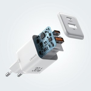 Bemutatjuk az X-ron sorozatból származó 30W-os USAMS fali töltőt, amely a kompakt méretet és a gyorstöltést kombinálja. Ez a rendkívül praktikus töltő USB-A és USB-C portokkal van felszerelve, amelyek lehetővé teszik különböző eszközök kényelmes és hatékony töltését. A minimalista kialakítás ellenére a töltő lenyűgöző 30W teljesítményt kínál. Kis mérete miatt ideális a hordozhatóságra, miközben minimális helyet foglal a konnektorban, ami rendkívül praktikus, ha egyszerre több eszközt használunk. A kétfunkciós kialakítás USB-A és USB-C portokkal sokoldalú gyorstöltési lehetőségeket biztosít. Ez a töltő támogat különféle protokollokat, beleértve a PD, QC, SCP, FC, AEC, PPS és Apple2.4, hogy megfeleljen a piaci gyorstöltési igényeknek. A harmadik generációs GaN chip által működtetve a töltő hatékonyságot és alacsony hőemissziót biztosít. Ez garantálja a stabil teljesítményt, miközben a fejlett védelmi funkciók biztonságos használatot biztosítanak. A GaN chip az eszköz igényeire reagálva automatikusan átvált karbantartási módra, amikor a töltöttségi szint eléri a 80%-ot. Esztétikai szempontok figyelembevételével három univerzális színben kapható, így a választásodhoz illő stílust választhatod. Modern megoldások alapján ez a fali töltő fejlett technológiát képvisel elegáns csomagolásban.