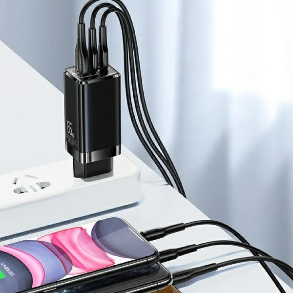 - Támogatja 3 eszköz egyidejű gyors töltését.
