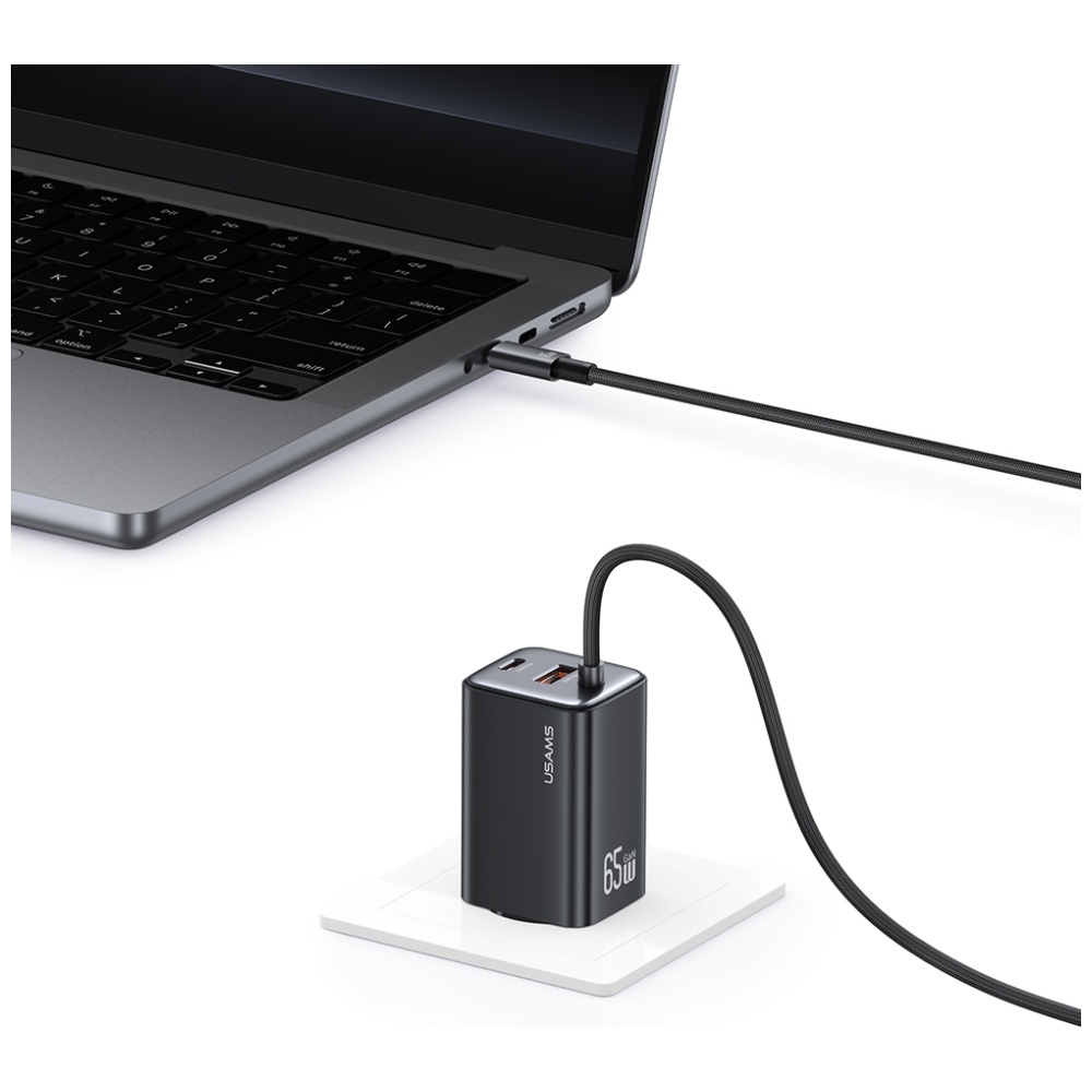 Biztonságos és tartós kialakítás: A tartósság a kiváló minőségű anyagokból készült töltő ellenáll a sérüléseknek. Kompakt mérete révén bármely utazótáskában elfér. Az USAMS logó a töltőn szemet gyönyörködtető, és kiemeli az elem egyediségét. A GaN technológia hatékony és gyors töltést biztosít.