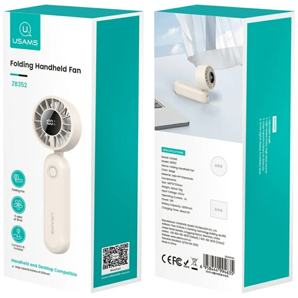 A ventilátor innovatív összecsukható dizájnnal rendelkezik, amely lehetővé teszi a könnyű átalakítást kézi ventilátorrá vagy kényelmes asztali állvánnyá. Akár sétál, akár az íróasztala mellett dolgozik, az USAMS Mini ZB352 alkalmazkodik az Ön igényeihez. Emellett a készülék szögbeállítást is kínál, lehetővé téve a légáramlás irányának precíz beállítását, oda, ahol a legnagyobb szükség van rá. Az ergonomikus kialakítás kényelmes fogást biztosít hosszabb használat során is.