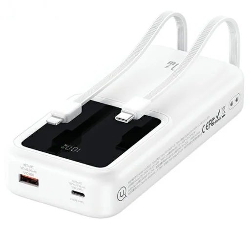 A powerbankba integrált két kábelnek köszönhetően korlátok nélkül töltheted készülékeidet, bárhol is legyen szükséged gyors energiafeltöltésre. A két különböző kábelvég – USB-C és Lightning – nagyon sokoldalúvá teszi az eszközt.