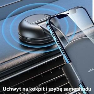 Az USAMS US-ZJ063 autós tartó műszerfalra szerelhető. Az állítható kar segítségével a telefon pozícióját igényeid szerint beállíthatod, ráadásul a tartó nem korlátozza a látóteret. Egy kézzel beállíthatod a telefon megfelelő szögét. Az alsó talp és a rögzítő karok csúszásmentes szilikonnal vannak borítva, amely megvédi a telefonodat az eséstől és a sérüléstől. A nagy felületű tapadókorong erős tartást és biztonságos használatot garantál. Az elforgatható fej megkönnyíti a használatot, és a trianguláció elvének köszönhetően a telefonunk stabil marad még hirtelen fékezés esetén is. - Anyag: ABS/ Szilikon - Kompatibilitás: 4.7-7.2" (55-95mm szélességű) telefonok - A csomag tartalma: Telefontartó, Tapadókorong karral, Pozicionáló.