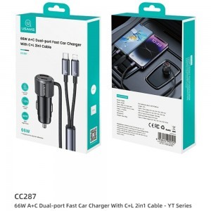 Az USAMS CC287 autós töltő a YT sorozat legújabb tagja, amely garantálja, hogy soha többé ne merüljön le készüléke az utazás során! Ez a nagy teljesítményű, 66W-os autós töltő egyedi módon egyesíti a modern technológiát és a praktikumot, egy beépített 2 az 1-ben USB-C és Lightning kábellel, valamint kiegészítő USB-A és USB-C portokkal a maximális rugalmasság érdekében.